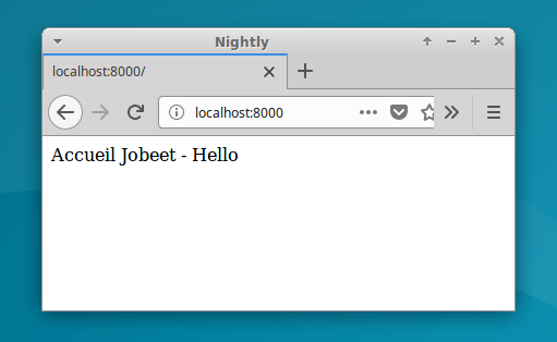 # type: annotationNous pouvons maintenant démarrer notre serveur Web via l’exécution de la commande make serve bin/console server:run dans un terminal et se rendre à l’adresse http://localhost:8000 avec son navigateur pour visualiser le résultat.